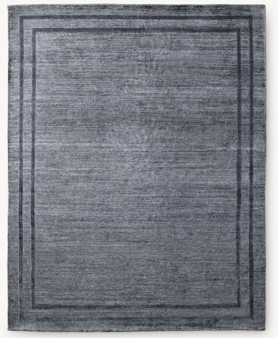 Our Parallel Border rug is framed with tonal color and cut pile, creating subtle contrast with surrounding striated loops and shearing. The fine viscose yarns, hand knotted in an exceptionally dense 120 knots per square inch, add a silken feel and lustrous finish.