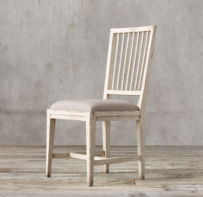 Simplicity and grace are the hallmarks of Swedish Gustavian design, a pared-down take on the more ornate French styles popular at the end of the 18th century. These chairs capture that charm with intricately carved details and softly weathered finishes.