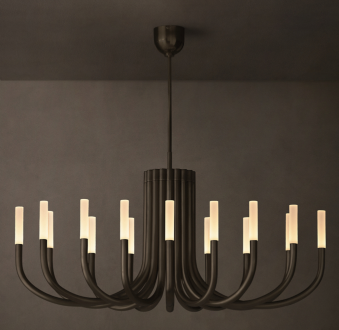 $10,999Member /$15,713RegularInspired by minimalist midcentury Italian design, our contemporary interpretation of the chandelier offers reductionist form in a striking silhouette. Spare and understated, Rousseau's gracefully upraised arms hold aloft an etched glass shade fitted with an integrated LED bulb. When lit, the fixture emits a warm, filtered glow.