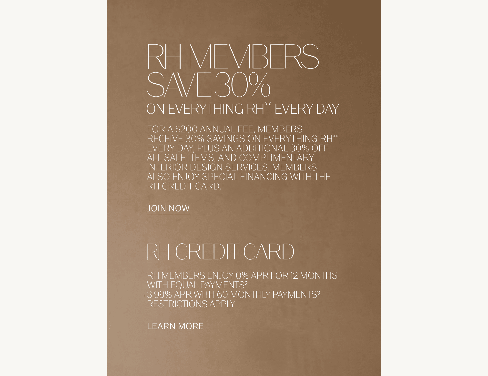 **Limited exclusions apply. See RH Members Program Terms & Conditions for details.